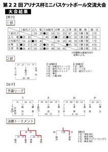 2018年2月24日(土)~25日(日)にアリナスで開催された、第22回アリナス杯ミニバスケットボール交流大会の結果をお知らせします。