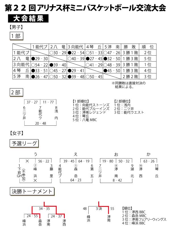 アリナス杯ミニバスの結果(2/24~25)