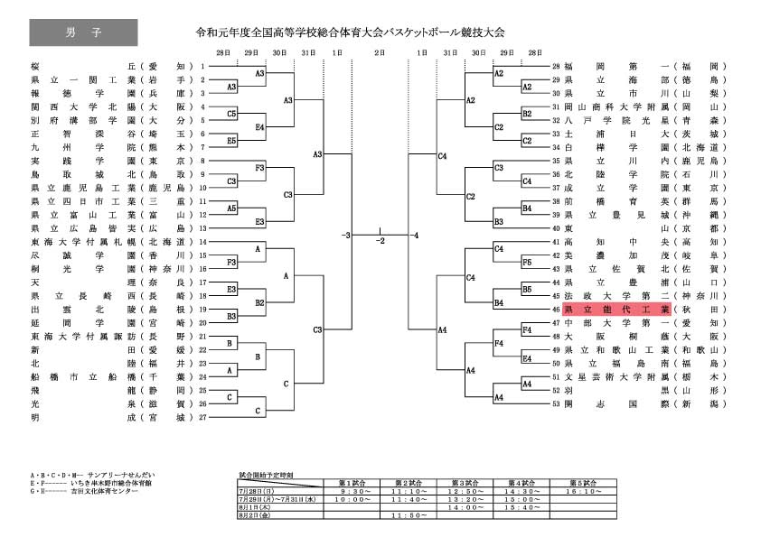 インターハイ組合せ決定のお知らせ(7/28~8/2)