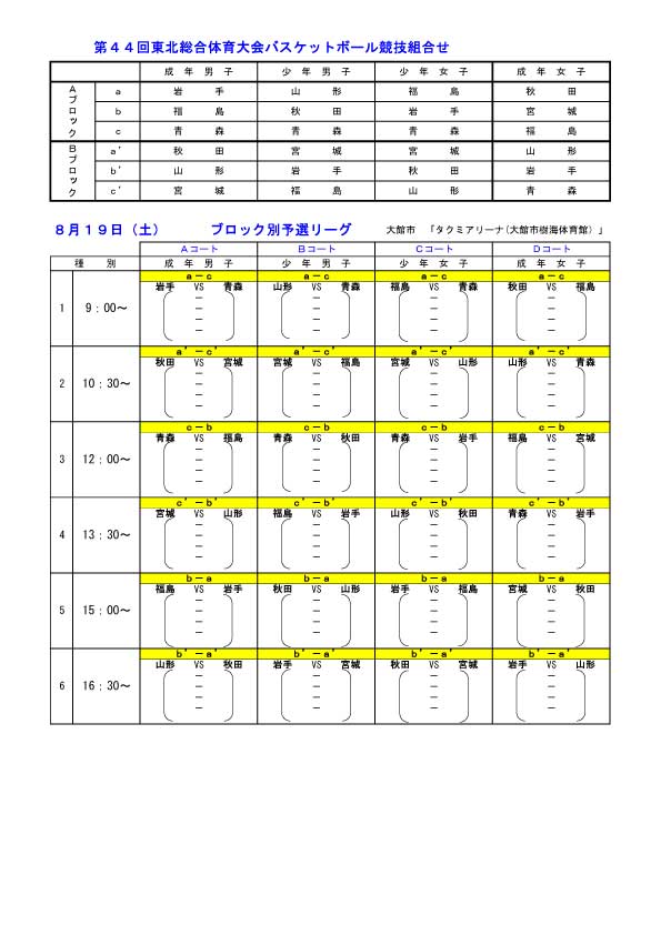 ミニ国体のお知らせ(8/19~20)