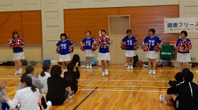 9チーム参加し、ポンポンチアーズのダンスに続き、準備体操として白神ねぎのんとのしろ健康体操を行ってスタート。