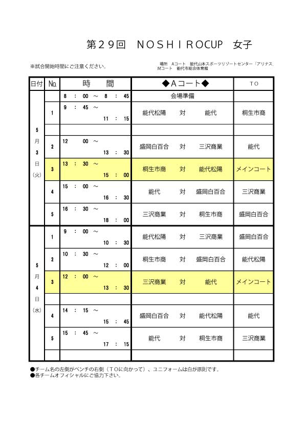 女子日程2016