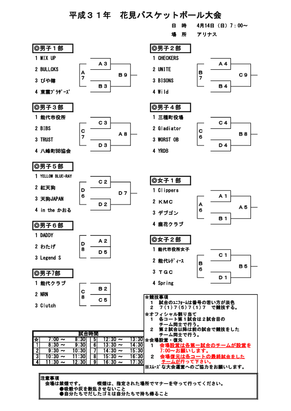 2019/04/12 / 最終更新日時 : 2019/04/12 admin お知らせ 平成31年花見バスケットボール大会のお知らせ(4/14) 平成31年花見バスケットボール大会が4/14(日) 8:30からアリナスで開催されます。大会の組み合わせは下記組み合わせの通りとなっております。 詳細は能代市バスケットボール協会のHPをご覧ください。 Follow me! FacebookXHatenaPocketCopy
