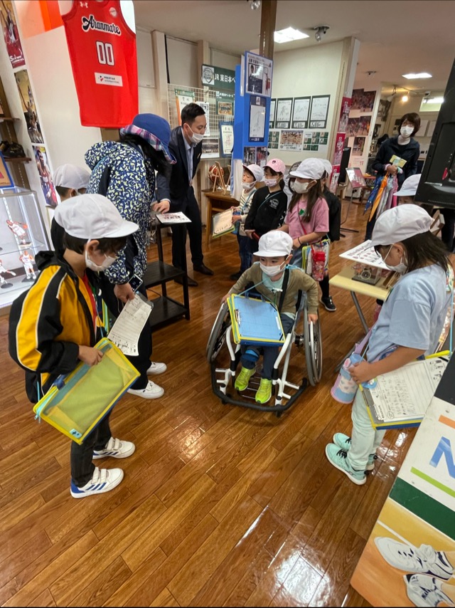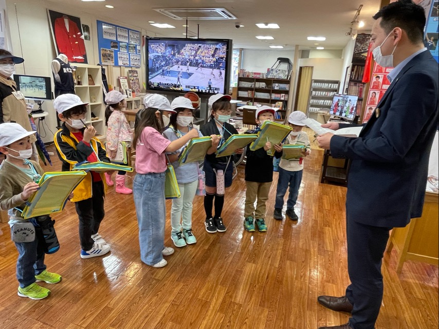 能代市の渟城南小2年生が「町たんけん」で見学に来てくれました。田臥勇太選手を知っている子も多く、さすが「バスケの街能代」の子どもたちです。