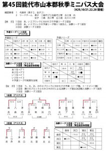 2017年10月21日、22日に開催された第45回能代市山本郡秋季ミニバス大会の1日目と2日目の結果をお知らせします。