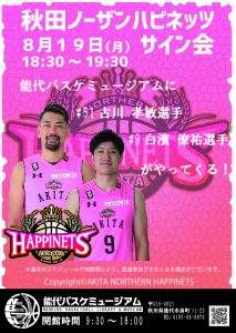秋田ノーザンハピネッツサイン会(8/19 18:30~)参加選手変更のお知らせ