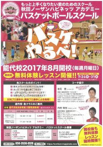 秋田ノーザンハピネッツバスケスクール能代校のお知らせ!!