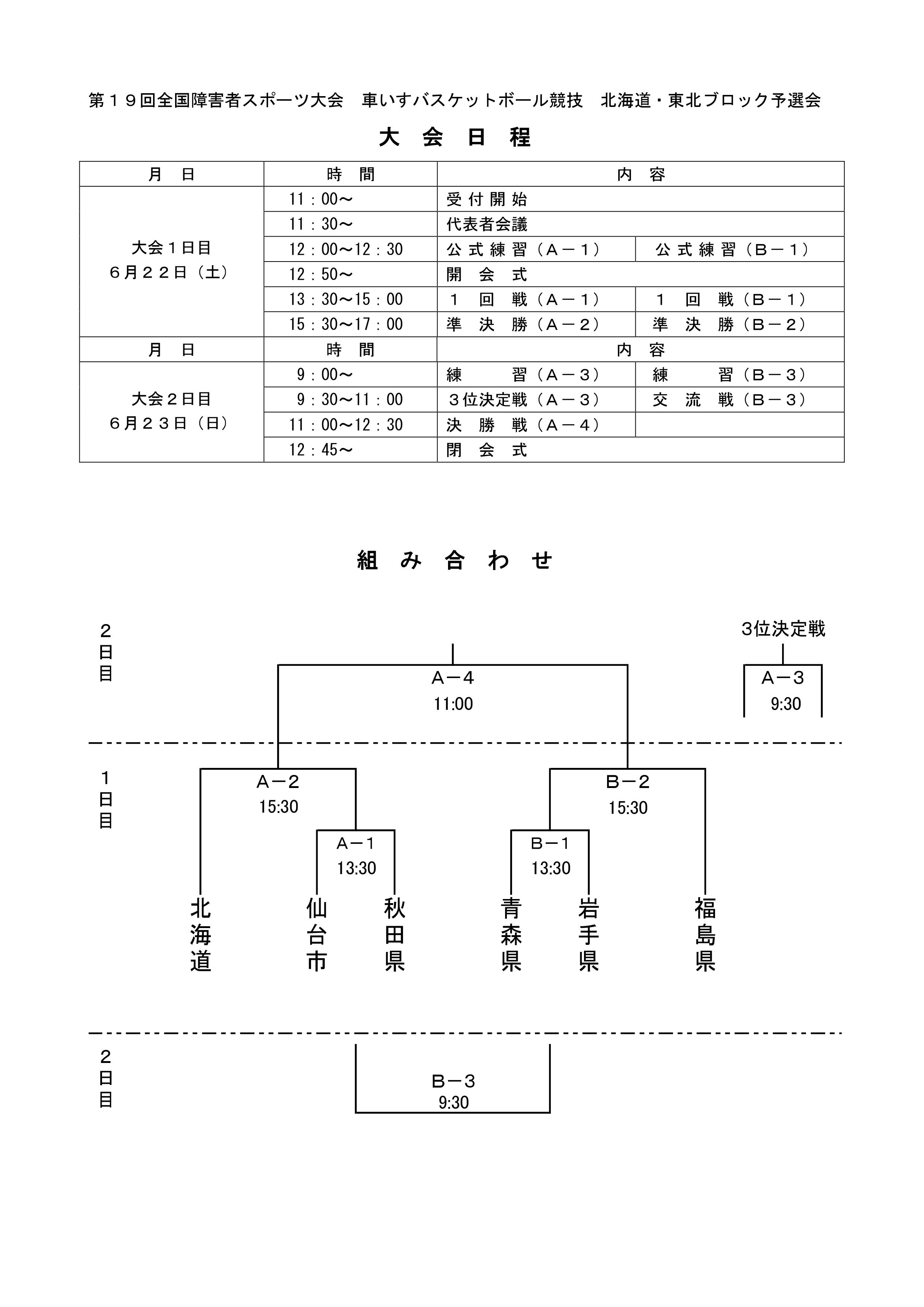 第19回全国障害者スポーツ大会 車いすバスケットボール競技 北海道・東北ブロック予選会(6/22、23)開催のお知らせ