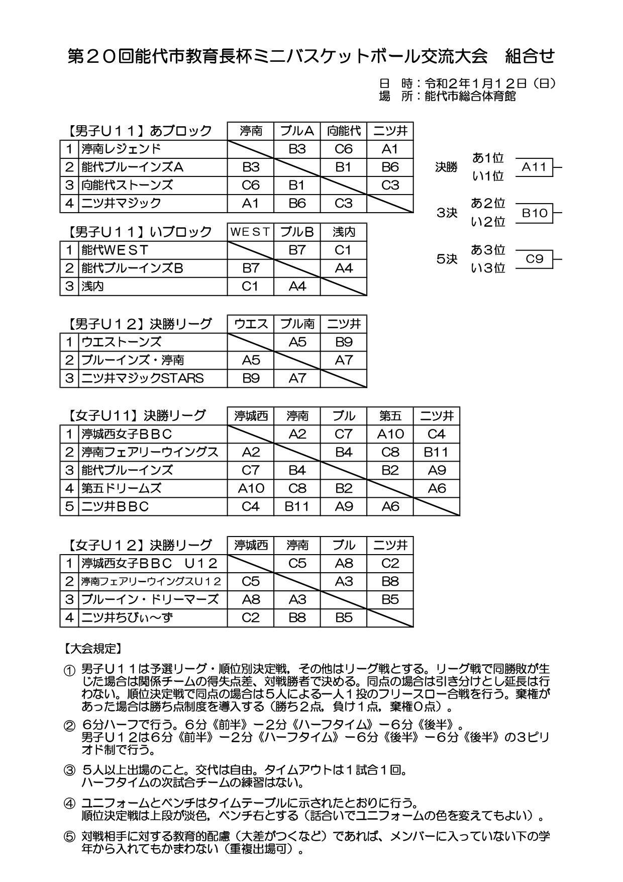 2020/01/10 / 最終更新日時 : 2020/01/10 admin お知らせ 第20回能代市教育長杯ミニバスケットボール交流大会のお知らせ(1/12) 第20回能代市教育長杯ミニバスケットボール交流大会が1月12日(日)、 能代市総合体育館にて開催されます! 大会組み合わせおよび詳細は添付画像、または能代市体育協会のHPをご覧ください。 Follow me! FacebookXHatenaPocketCopy