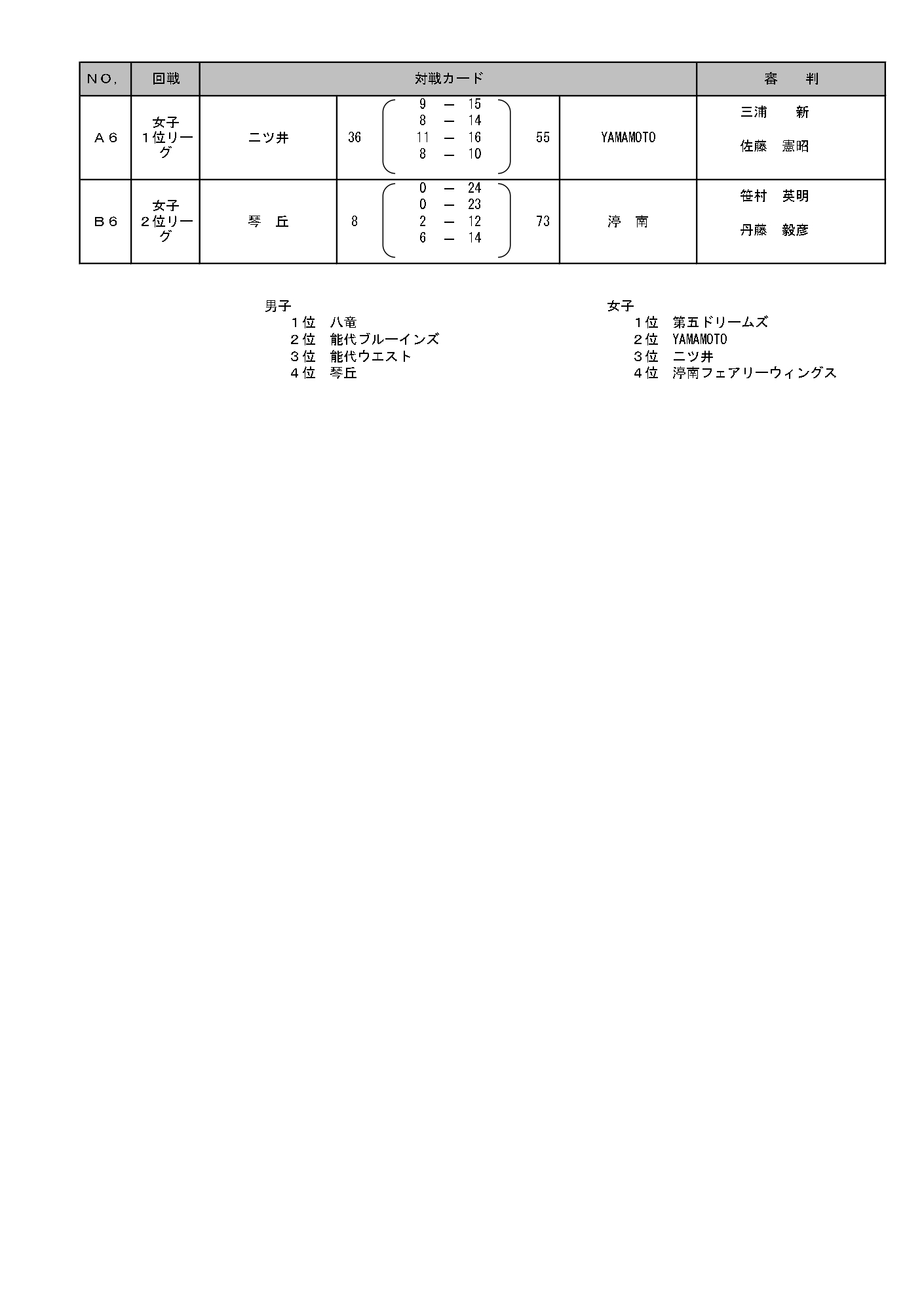 | 4位 | 渟南フェアリーウィングス |