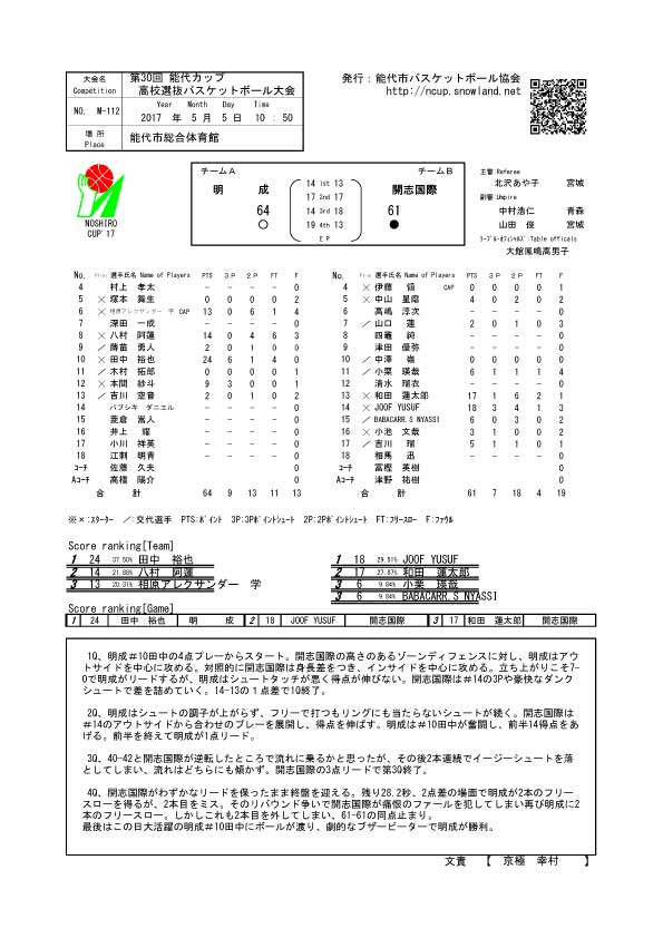 第30回能代カップ速報(2017/5/5)第2試合