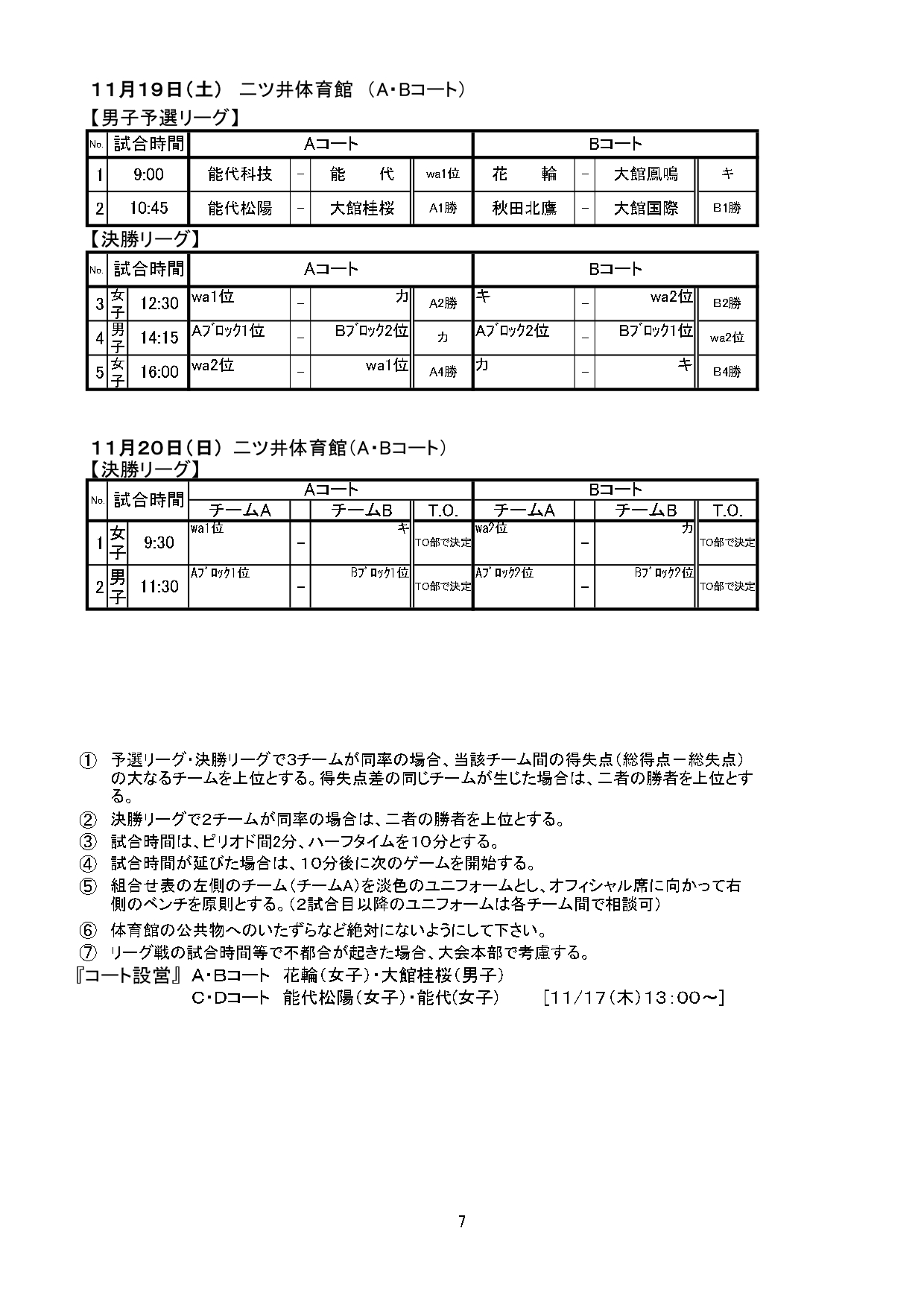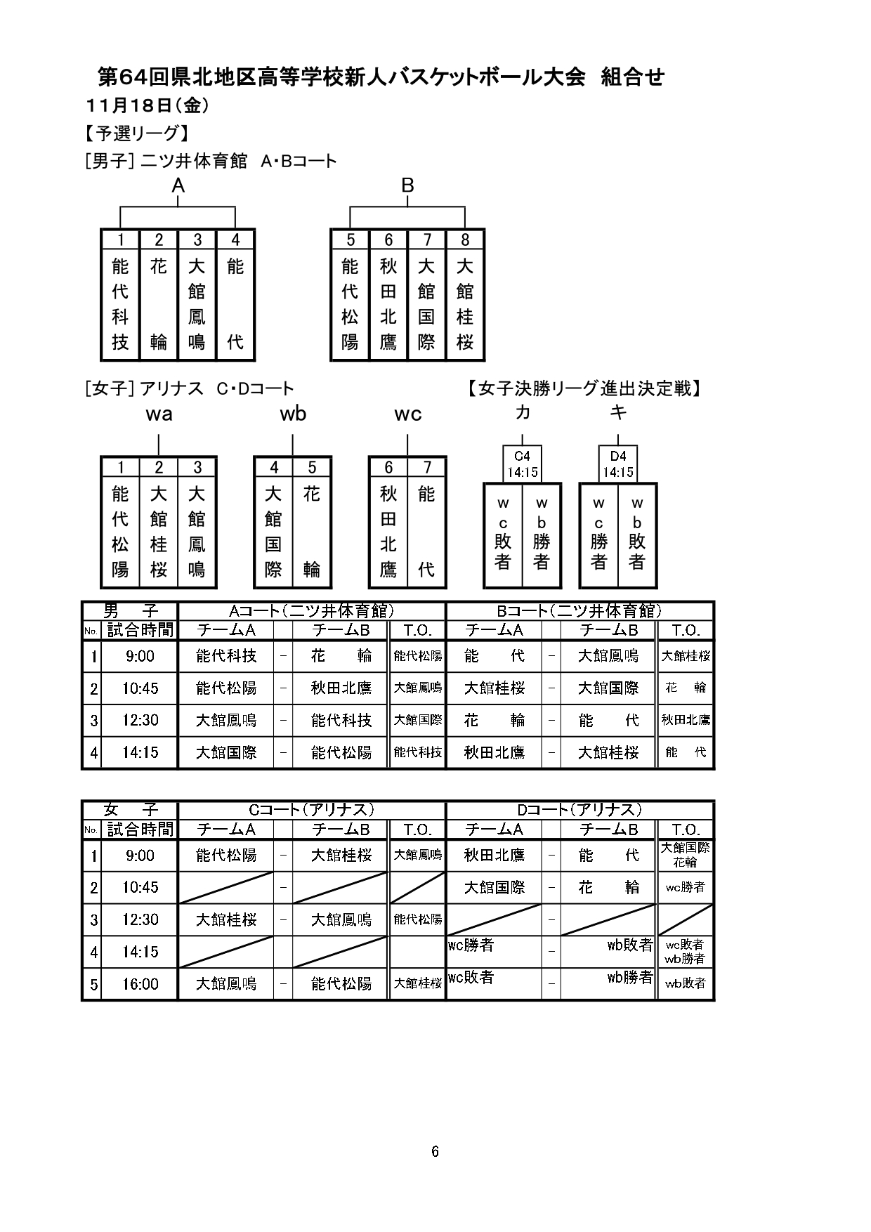 2022/11/10 / 最終更新日時 : 2022/11/10 hoophall お知らせ 第64回県北地区高校新人バスケットボール大会組み合わせ(11/10) 第64回県北地区高校新人バスケットボール大会が11/18~20日、能代市のアリナス・二ツ井町総合体育館で開催されます。 能代市からは、男子が能代科学技術・能代・能代松陽の3チーム、女子が能代松陽・能代の2チームが出場します。各チームの皆さん、頑張ってください! なお、新型コロナウイルス感染症対策のため、一般の方は観戦できません。 組み合わせは以下のとおりです。 Follow me! FacebookXHatenaPocketCopy