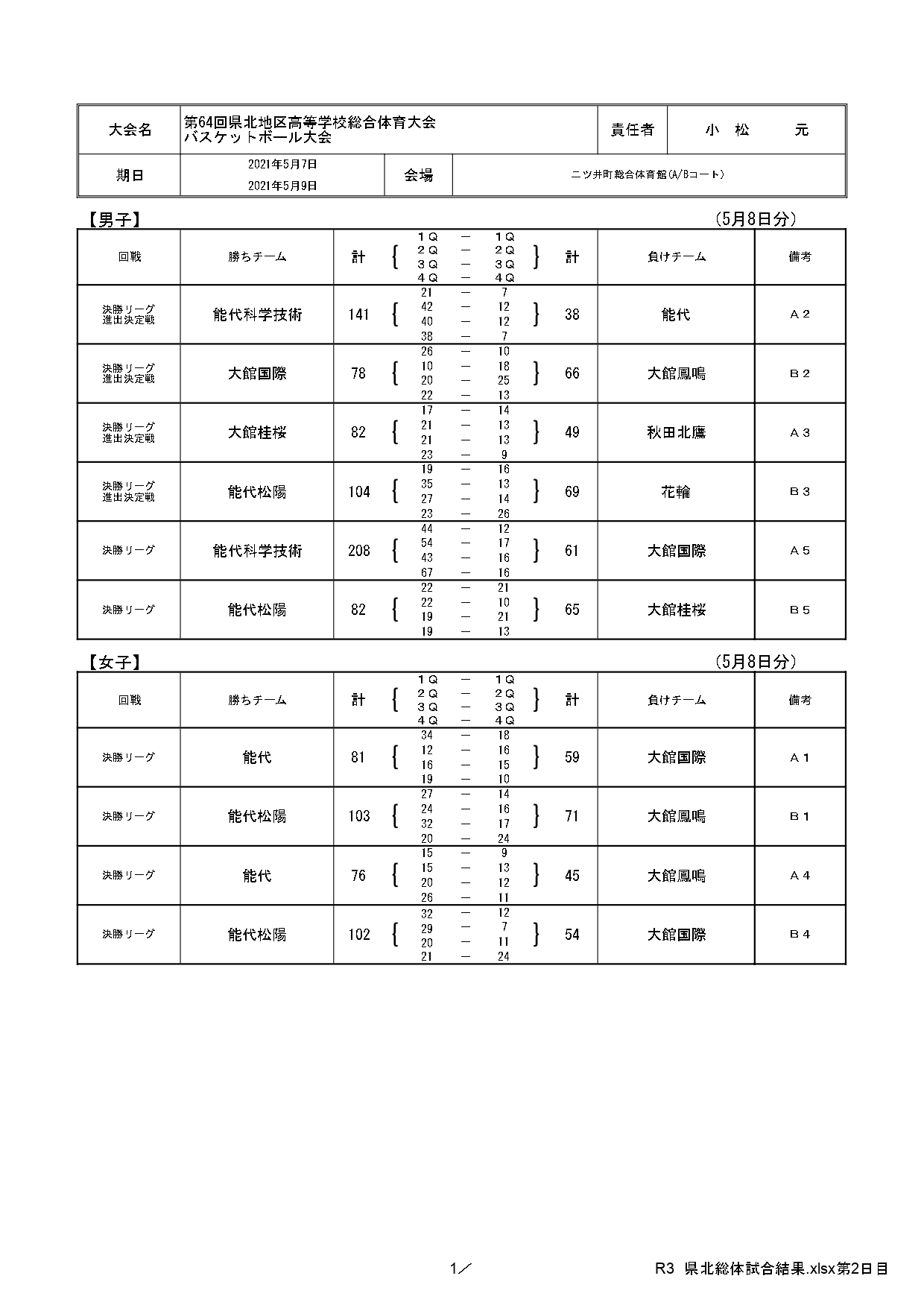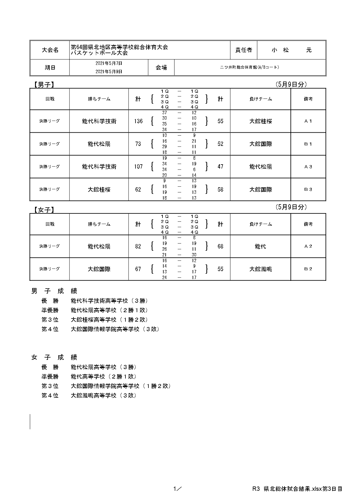 第64回県北高校総体結果(5/10)