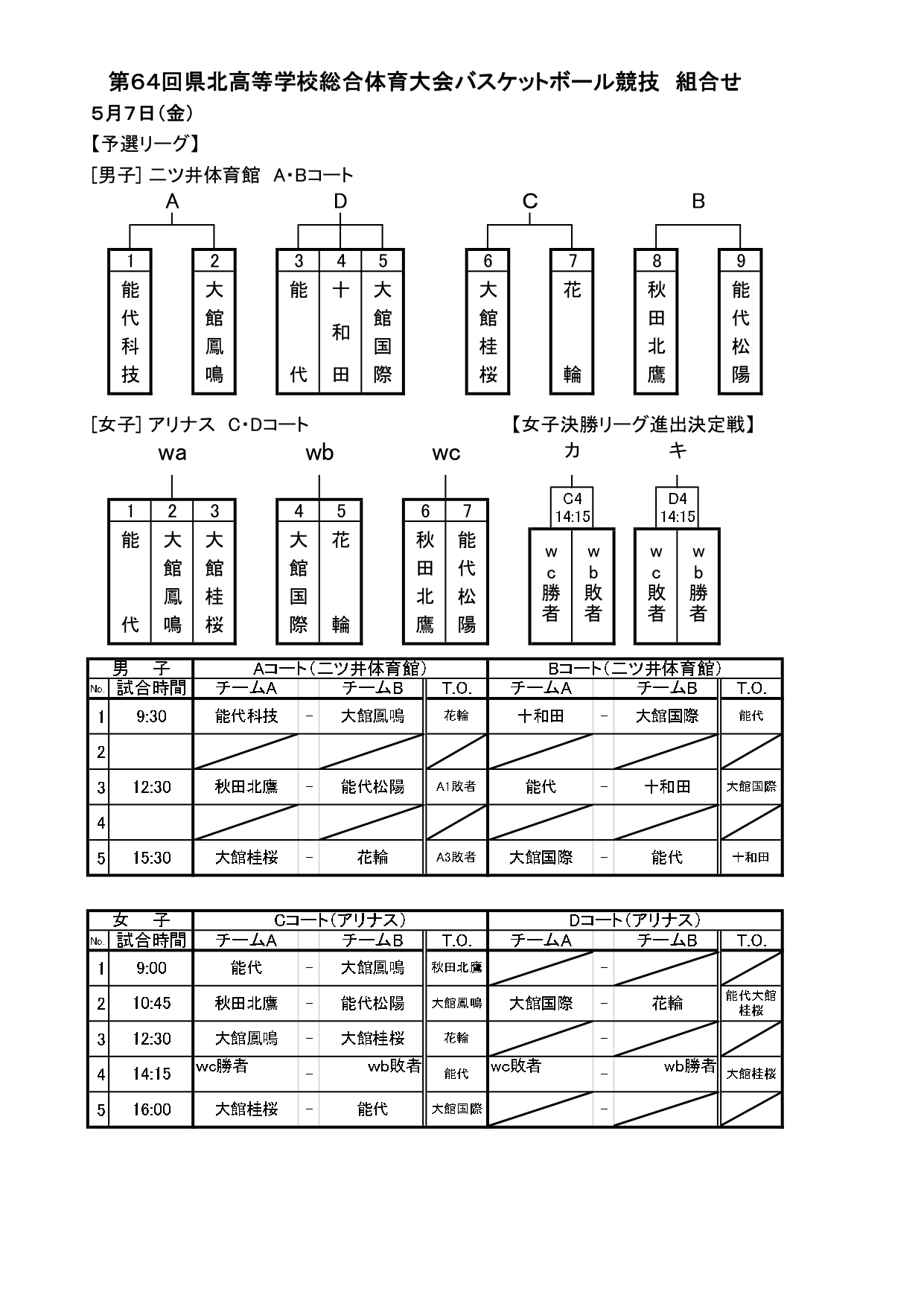 能代市からは男子3チーム、女子2チームが出場します。