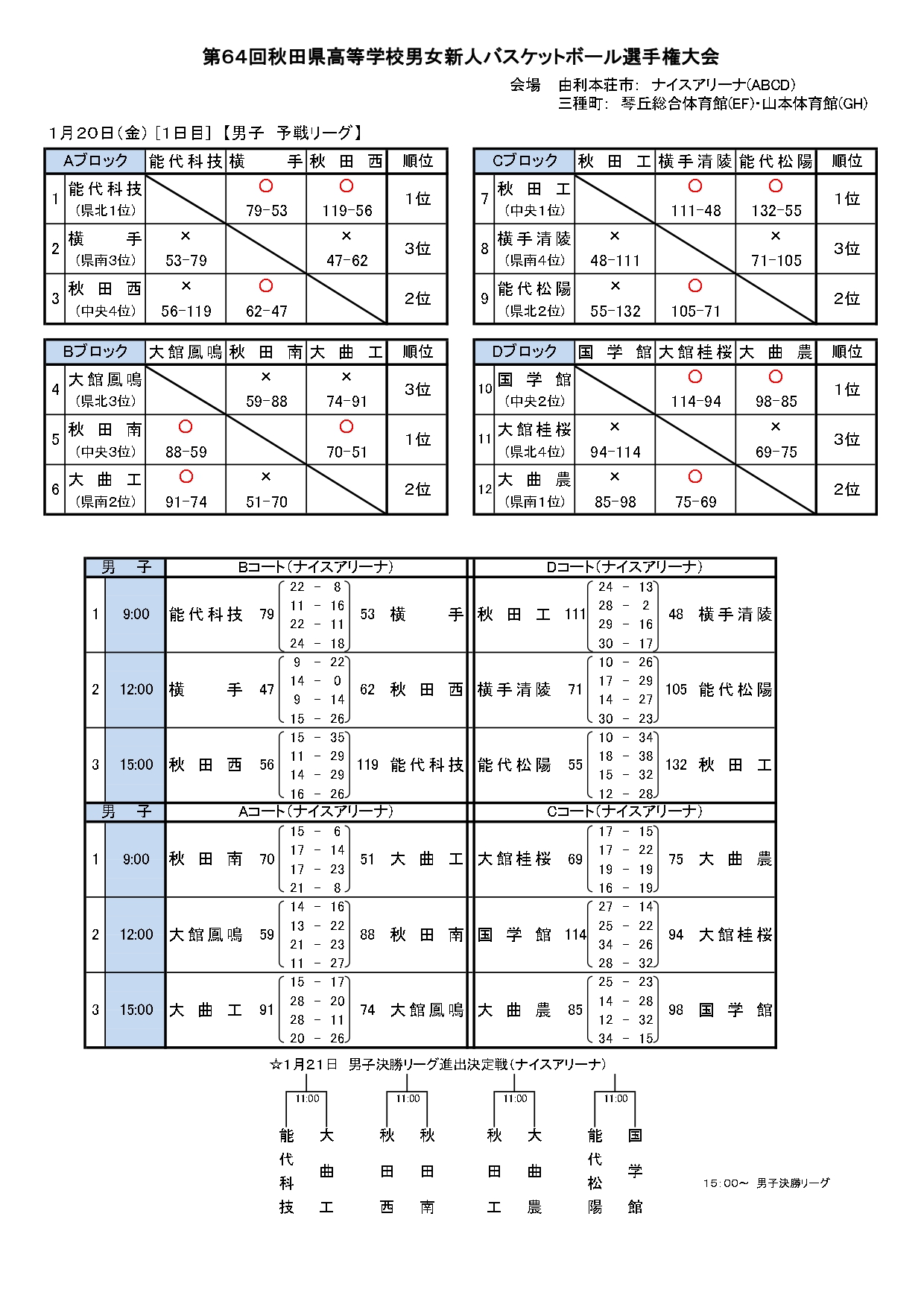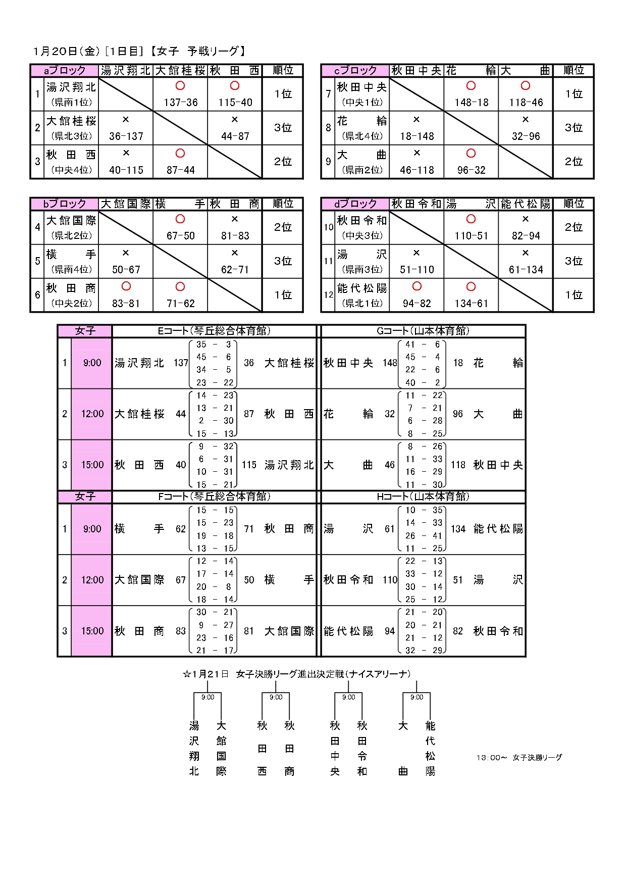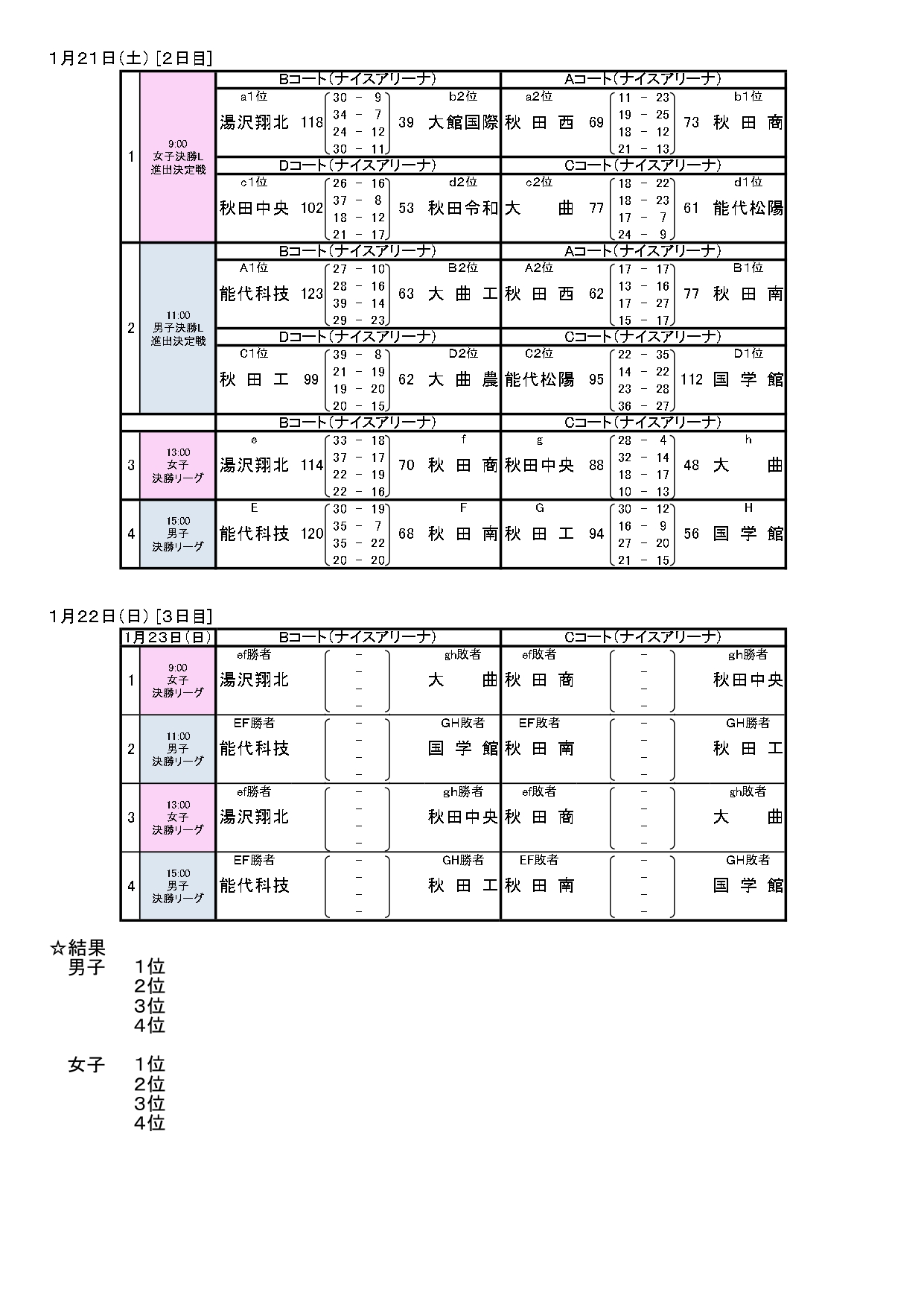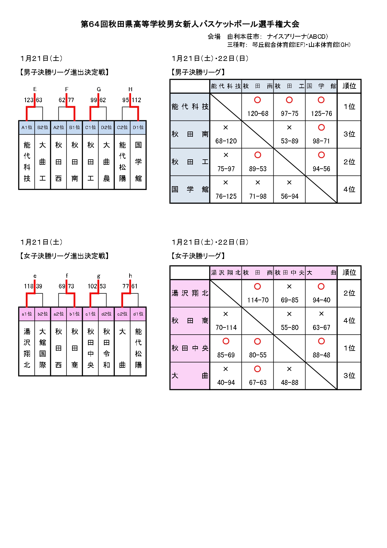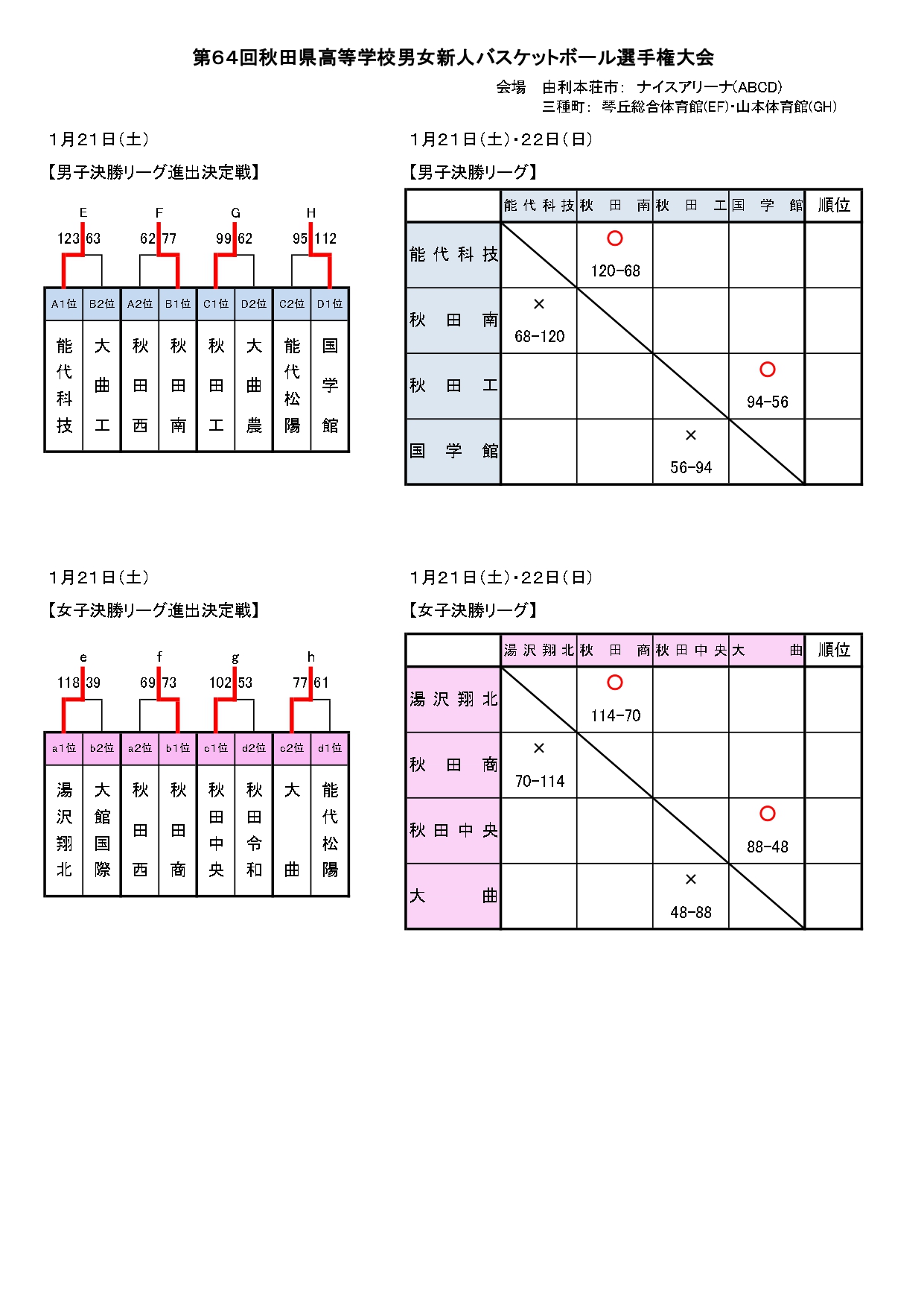 第64回秋田県高校男女新人バスケットボール選手権大会結果(1/23)