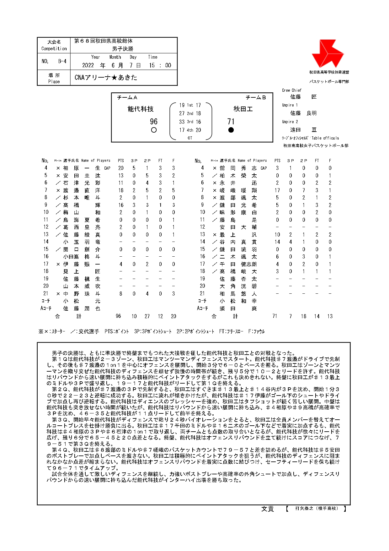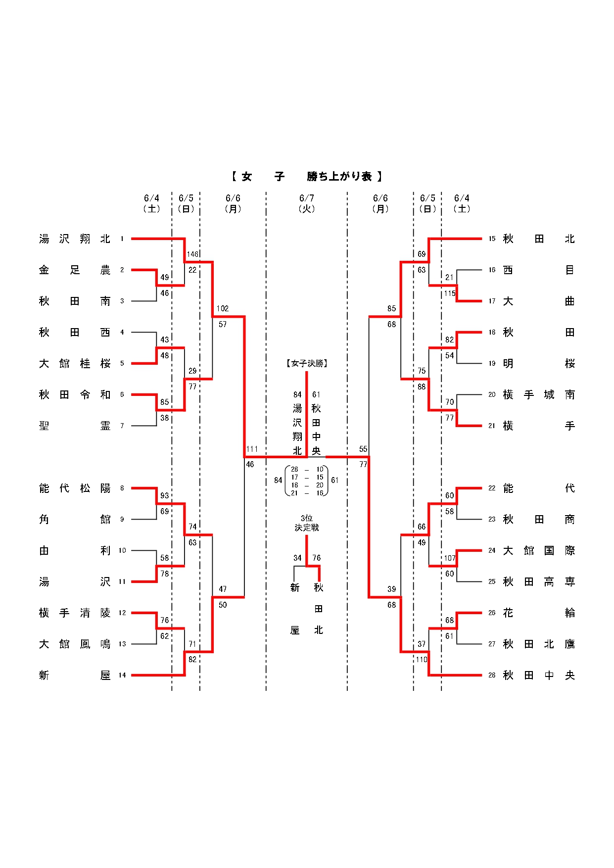 このほかの試合のスコアは秋田県バスケットボール協会公式サイトでご確認ください。