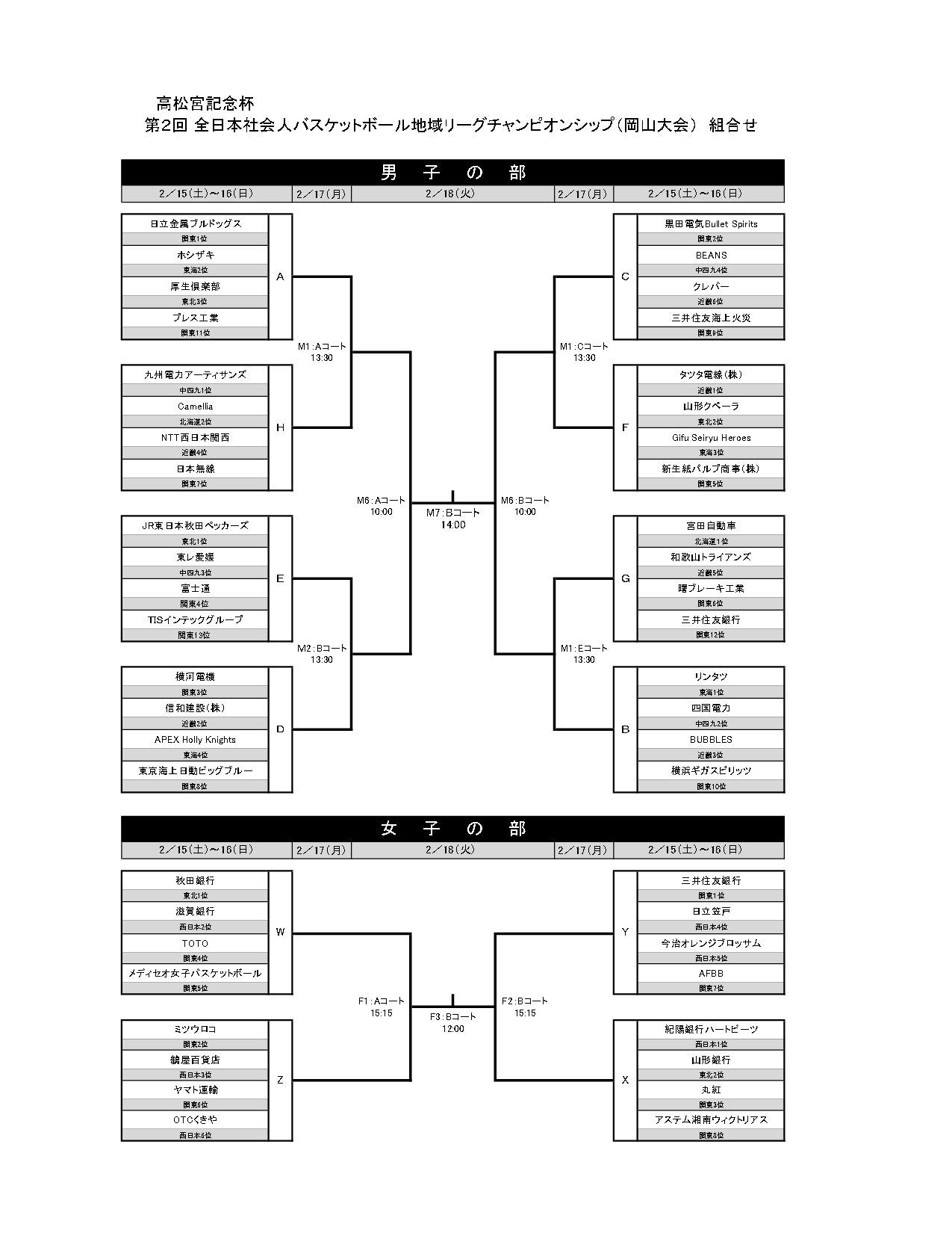 高松宮記念杯 第2回全日本社会人バスケットボール地域リーグチャンピオンシップのお知らせ(2/15-18)