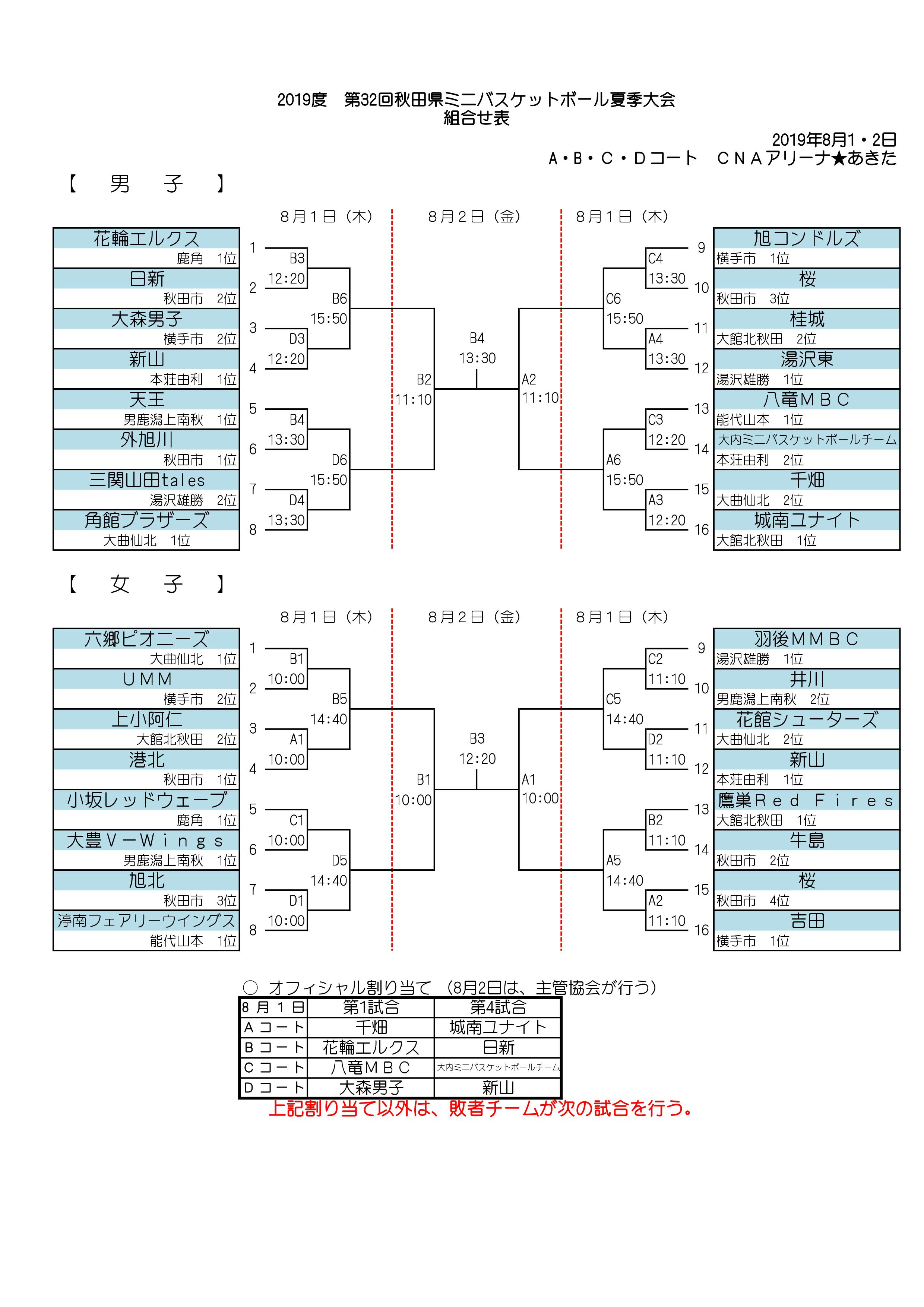 2019年度 第32回秋田県ミニバスケットボール夏季大会のお知らせ(8/1・2)