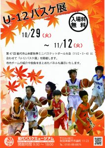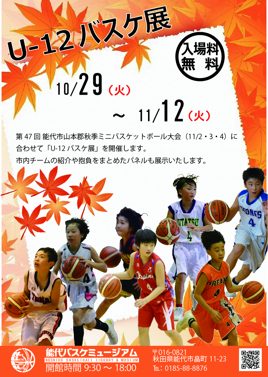 2019/10/25 / 最終更新日時 : 2019/10/25 admin お知らせ U-12バスケ展(10/29~11/12)のお知らせ 11月2日(土)~11月4日(月)の3日間に渡って開催される、第47回能代市山本郡秋季ミニバスケットボール大会に合わせて、 10月29日(火)~11月12日(火)、能代バスケミュージアムにてU-12バスケ展を開催します! 各チームの紹介や抱負をまとめたパネル等、展示いたしますのでお時間がある方やお近くに立ち寄られた方は是非、足を運んでみてください。 Follow me! FacebookXHatenaPocketCopy